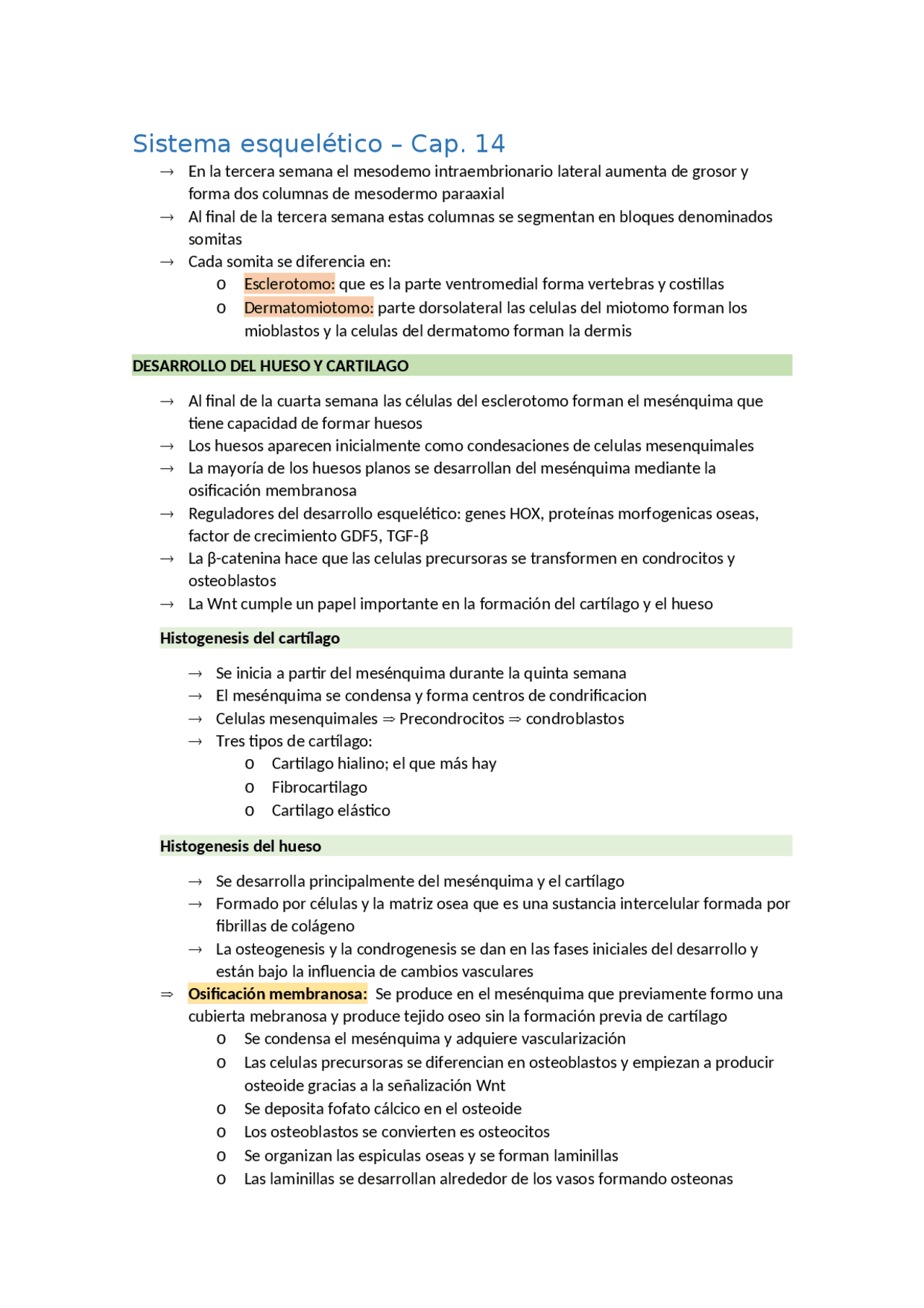 (DOC) Esqueleto y Articulaciones Desarrollo Embrionario ... La osificación comienza en los huesos largos hacia la octava semana e inicialmente tiene lugar en las diáfisis de los huesos a partir de los centros de osificación primarios. Hacia la semana 12 ya han aparecido centros de osificación primarios en casi todos los huesos de los miembros.